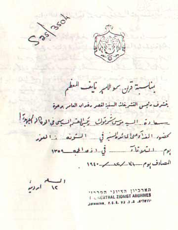 في الوكالة اليهودية لحضور الغداء على المائدة السنيه في الشونه